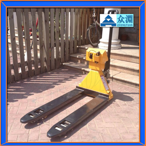 快:搬运和称重同时作业的叉车电子秤,轻压手柄即显示标准重量。